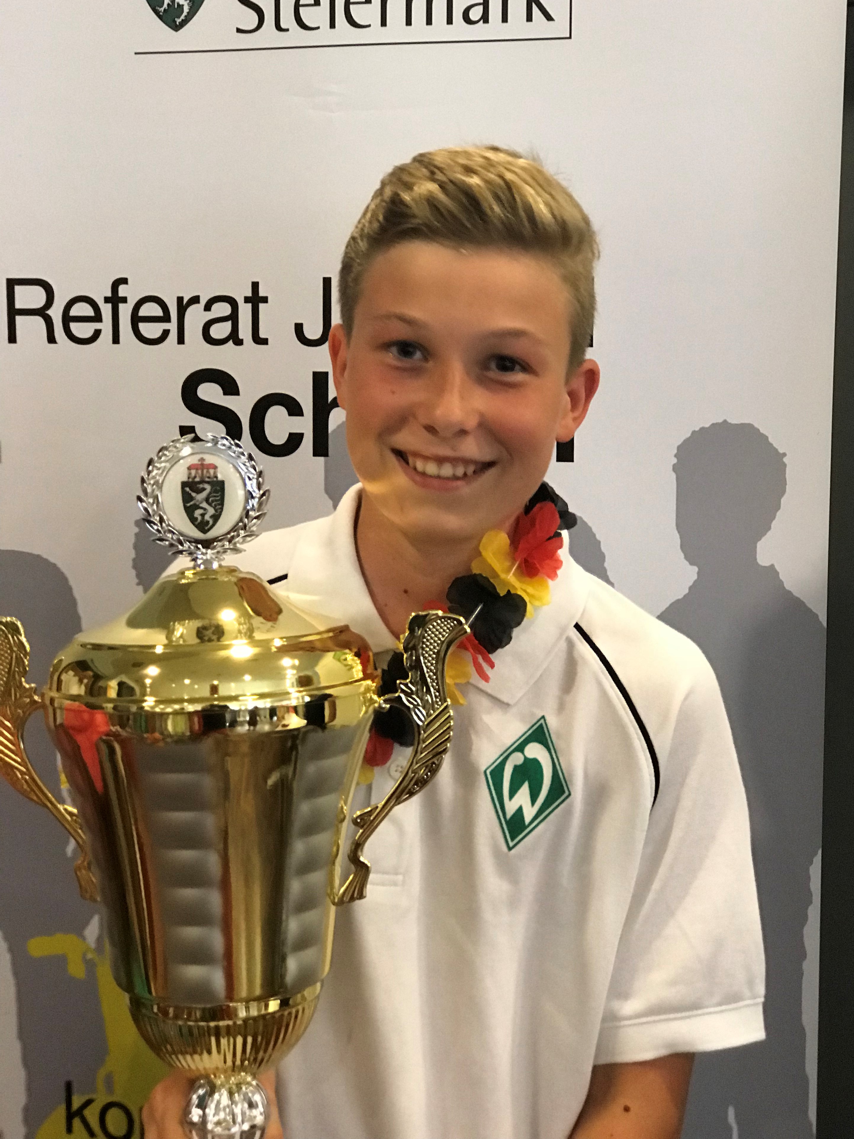 So kam es vor der letzten Runde zu der spannenden Konstellation, dass Collin einen Punkt aufholen musste. Der Werderaner spielte eine souveräne Partie und gewann gegen Jannik Bounlom aus der Schweiz. Collin kam auf sieben Punkte. Aber Norbert Szilagyi zeigte Nerven, verlor in einem Zeitnotdrama und blieb bei 6,5 Punkten stehen. So wurde Collin Colbow EU-Champion in der U 14. Werder Bremen gratuliert zum ersten internationalen Titel!