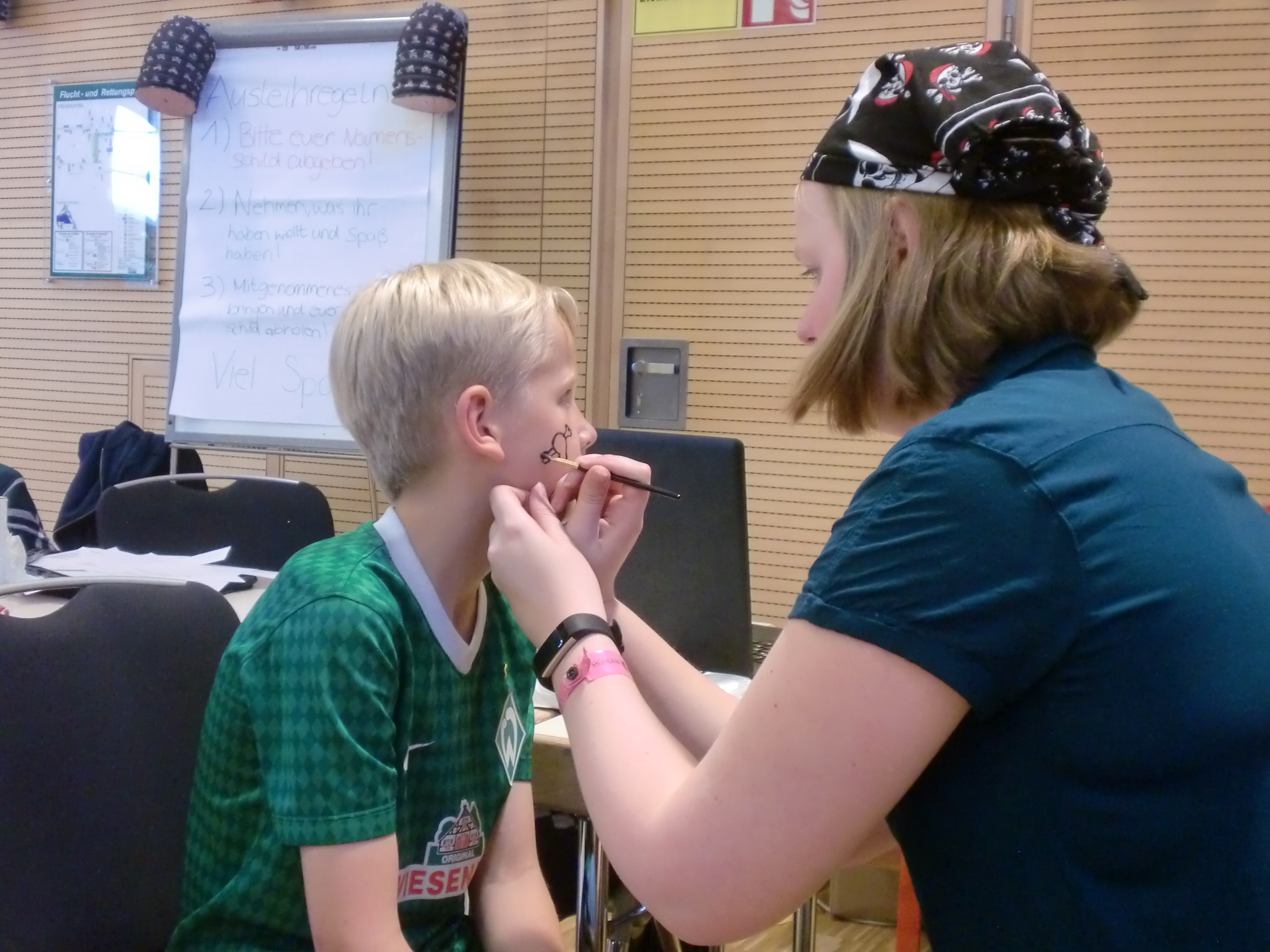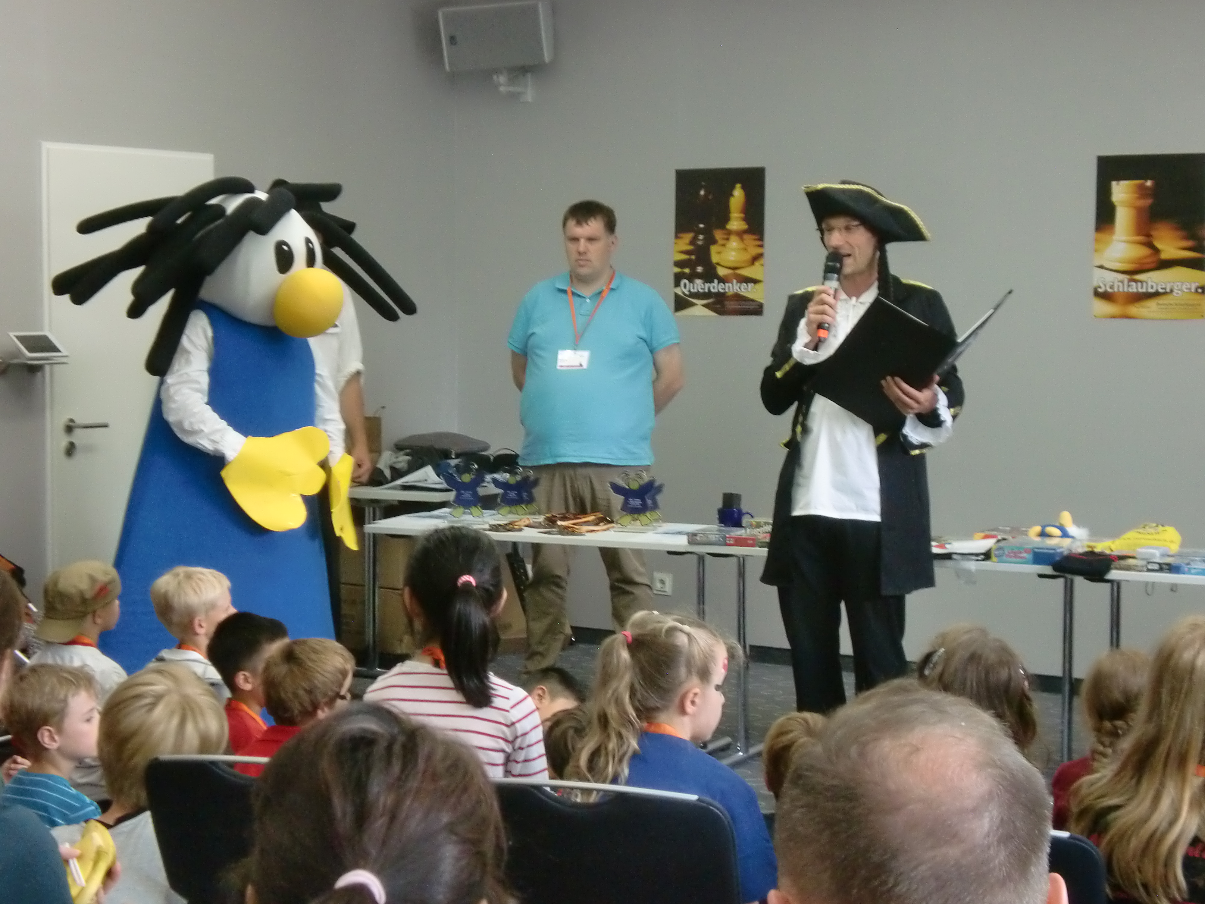 Das erste Turnier ist bereits beendet, und zwar das der Jüngsten. Alle Kinder bis neun Jahre dürfen nämlich beim so genannten Kika-Turnier mitmachen, in dem bereits seit Sonnabend insgesamt sieben Runden Schnellschach gespielt wurden. Aber es gehört in Wirklichkeit natürlich viel mehr dazu, es wird nämlich auch gebastelt, sich verkleidet und geschminkt, auch ein Kinoabend durfte nicht fehlen – das alles unter dem diesjährigen Motto souverän geleitet vom Piratenkapitän Patrick Wiebe.