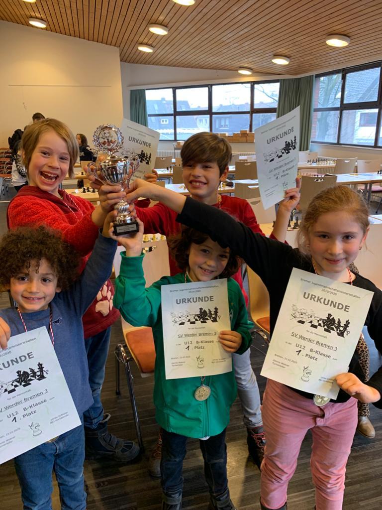 Auf dem zweiten Platz landete der Vorjahressieger Werder Bremen, diesmal mit einer sehr jungen, dafür aber auch sehr DWZ-starken Mannschaft. Gerade in diesem Alter sollte man bekanntlich die Aussagekraft der Wertungszahlen aber nicht zu hoch bewerten. So mussten die auf dem Papier favorisierten Werderaner am ersten Tag sogleich Niederlagen gegen Delmenhorst und Bremen-West quittieren. Doch dank einer starken Rückrunde mit drei Siegen in Serie sicherten sie sich ebenfalls die Qualifikation für die Norddeutsche Meisterschaft in Magdeburg.
