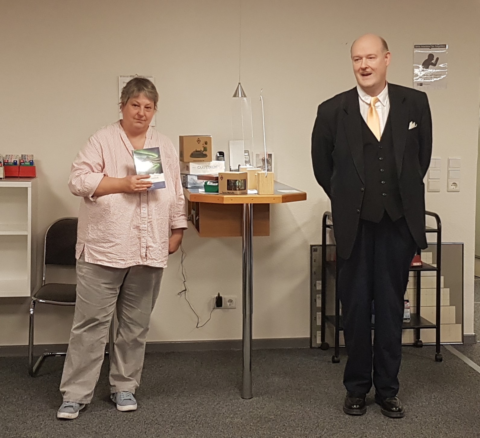 An die Vorstellung einer Bremer Schachjugend ohne Ulrike Schlüter müsse er sich erst gewöhnen, begann der Vorsitzende des Landesschachbunds, Dr. Oliver Höpfner, seine Laudatio auf unsere scheidende 1. Vorsitzende, und berichtete von der fast immer harmonischen und konstruktiven Zusammenarbeit, ehe er ihr zum Abschied einige Präsente überreichte.